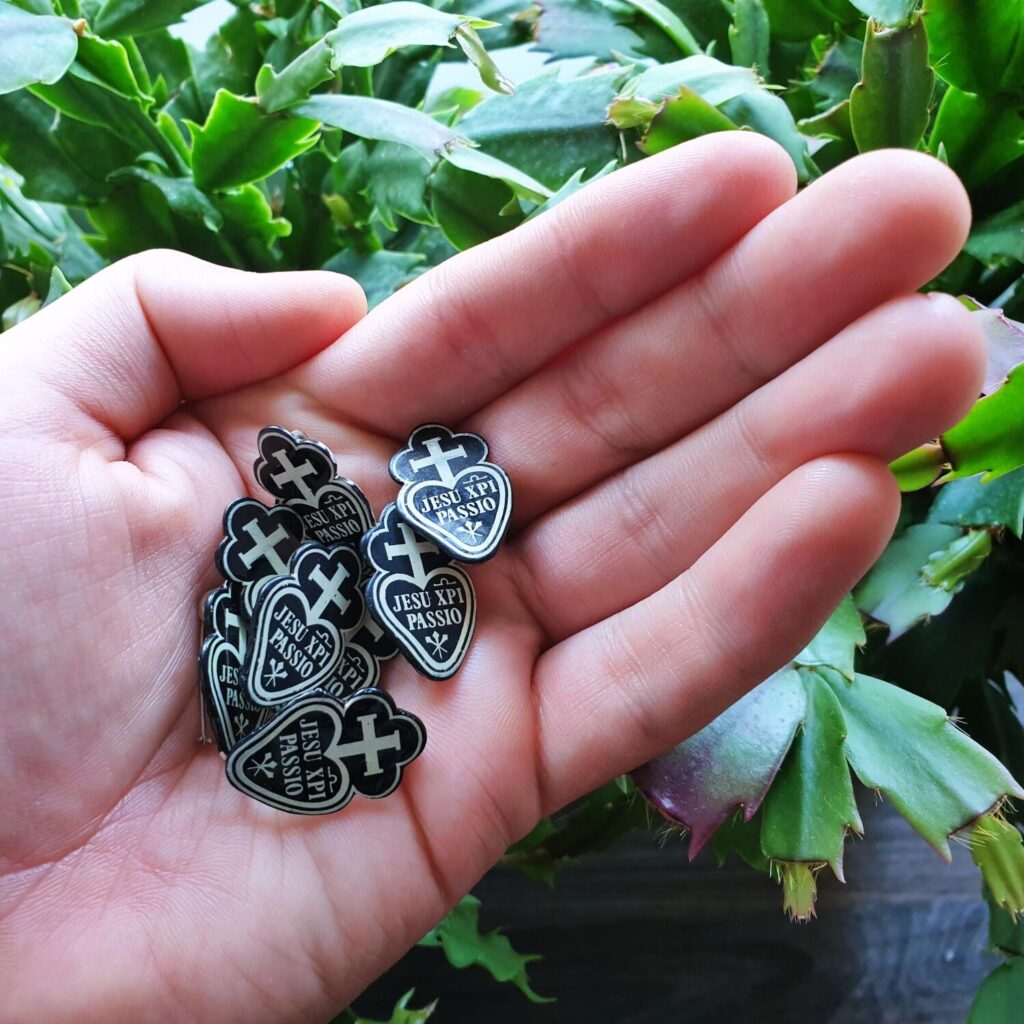 Малий скапулярій виготовляють із двох чотирикутних пелюсток вовняної тканини відповідного кольору, з’єднаних зав’язками або ремінцями так, щоб одна частина тканини звисала на грудях, а друга – на спині. Частини матеріалу прикрашені зображенням, зробленим не з вовни, але й іншим кольором, ніж сам скапулярій. Різноманітність чернечих харизм має наслідком різноманітність духовних шляхів, а отже, і скапуляріїв.